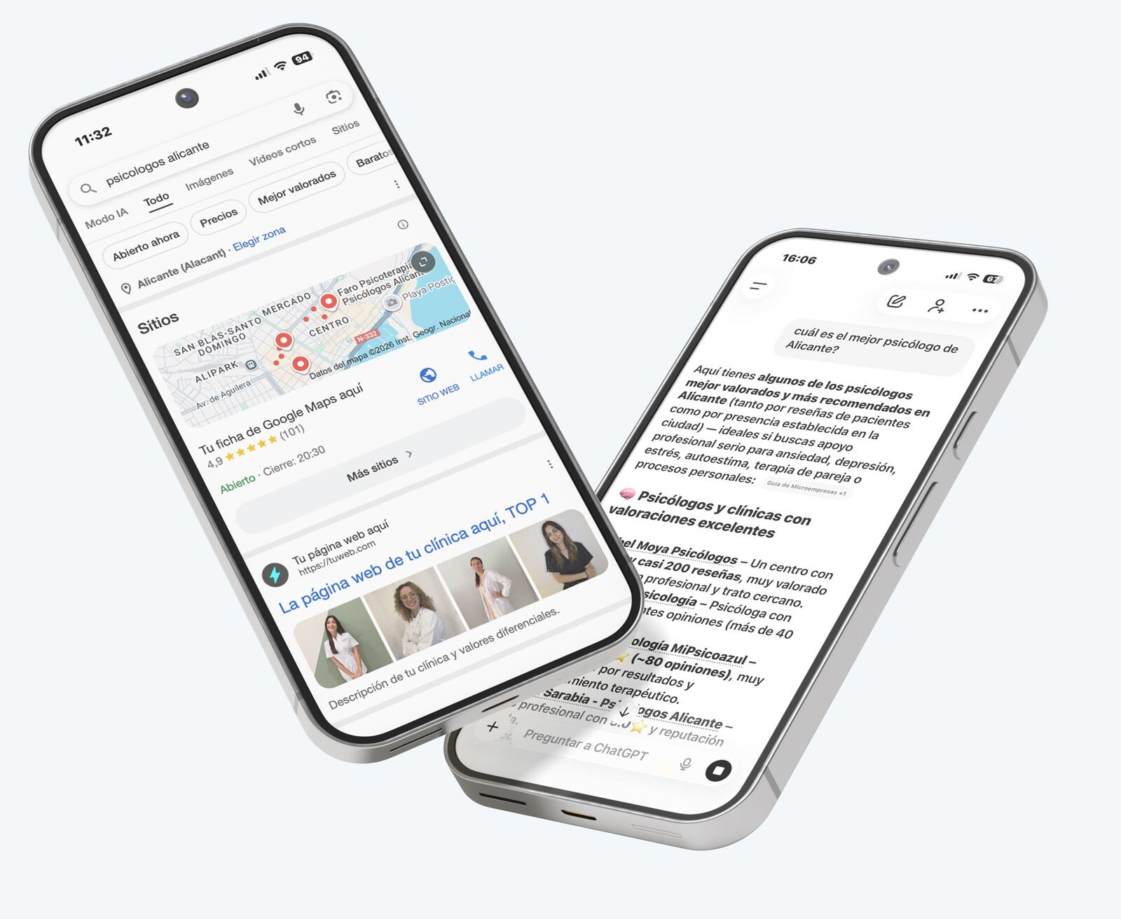 El posicionamiento SEO bien trabajado conecta tu consulta con personas que ya están buscando terapia psicológica en Google o a través de IA. Llegan pacientes informados, motivados y con predisposición a iniciar un proceso terapéutico, mejorando la calidad de las sesiones y evitando primeras citas sin compromiso real.